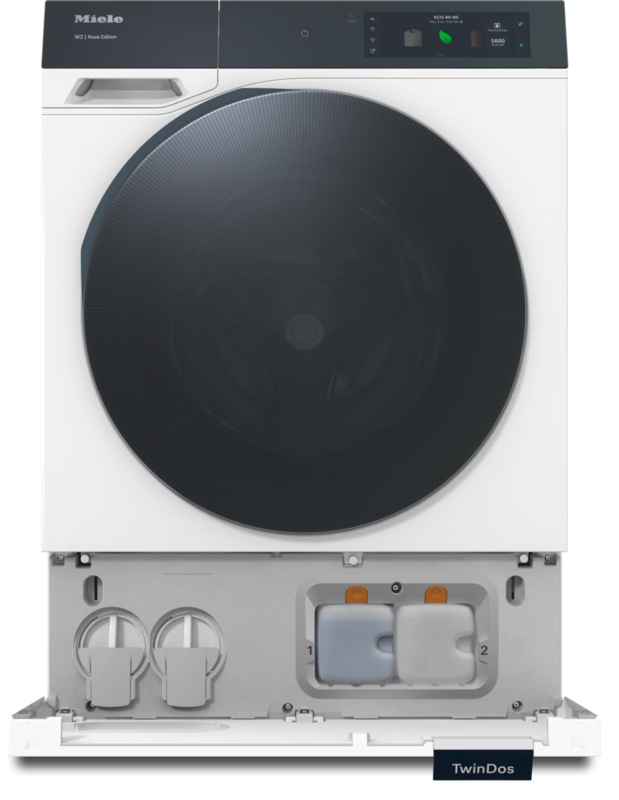 • TwinDos® s prepoznavanjem kartuš. Inteligenten avtomatski dozirni sistem. Prihranite do 40 % na detergentu zahvaljujoč natančnemu odmerjanju za vsako pranje