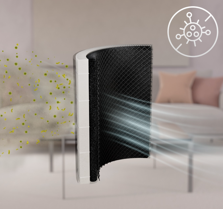 Posebno zasnovana aktivna ogljikova plast učinkovito odstranjuje neprijetne vonjave, povezane z domačimi živalmi, smetmi, kuhanjem, tobakom ipd., kar izboljšuje kakovost zraka v vašem domu.