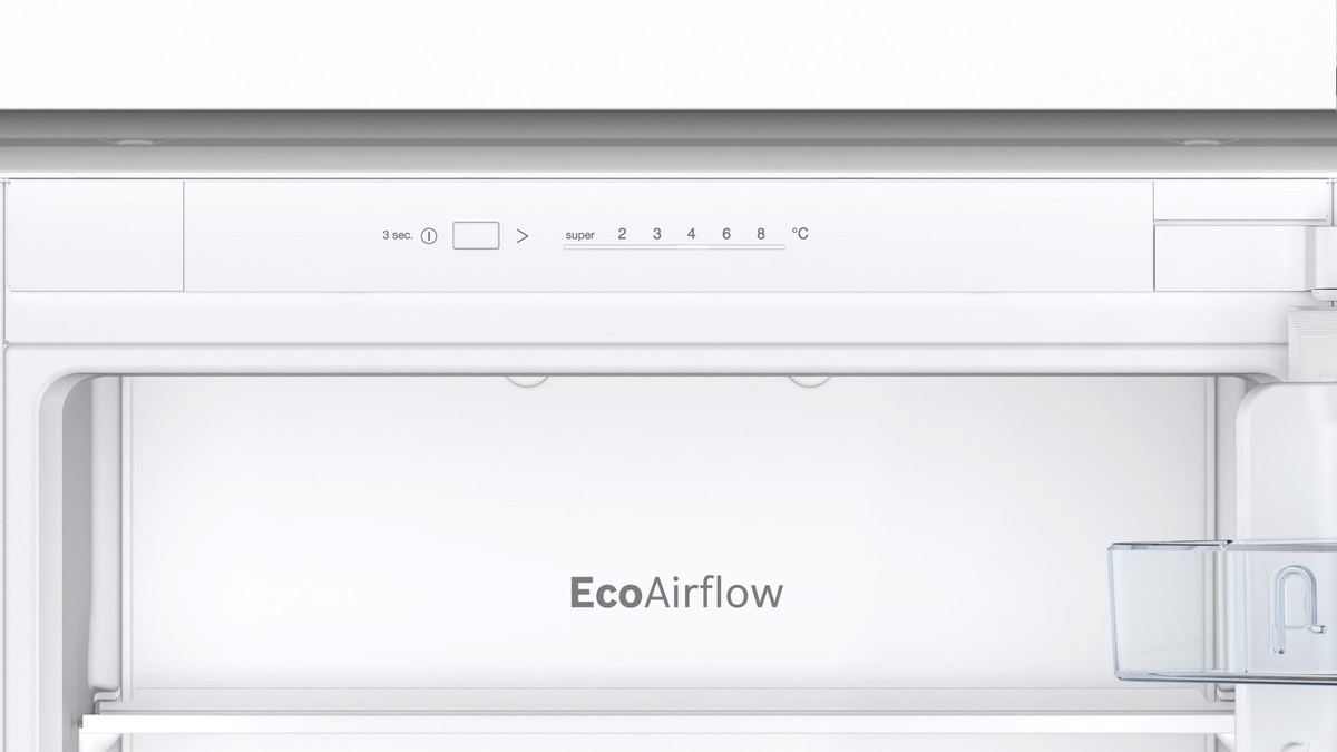 Prostoren vgradni hladilnik z zamrzovalnikom spodaj nudi optimalne pogoje za shranjevanje živil.