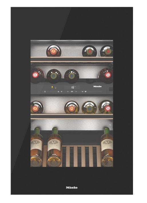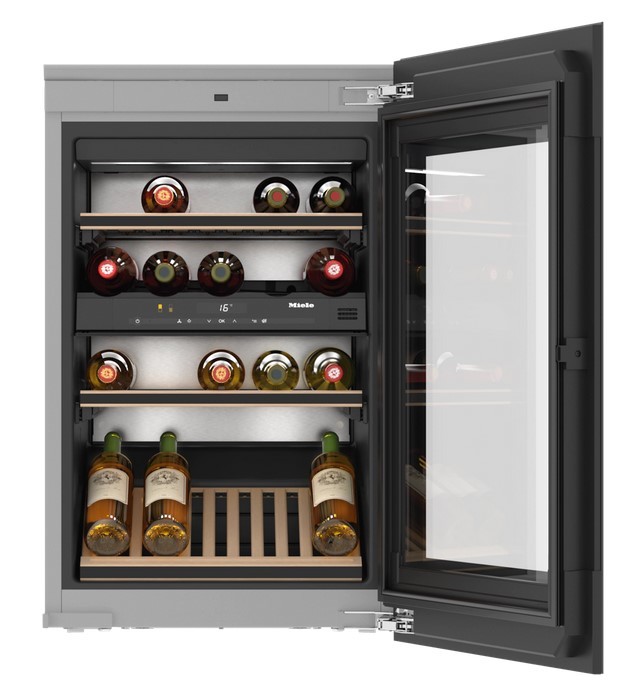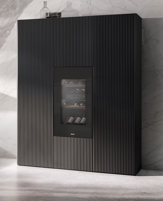 Vgradna vinska vitrina z rešetkami FlexiFrame in mehanizmom Push2open za zahtevne ljubitelje vina.