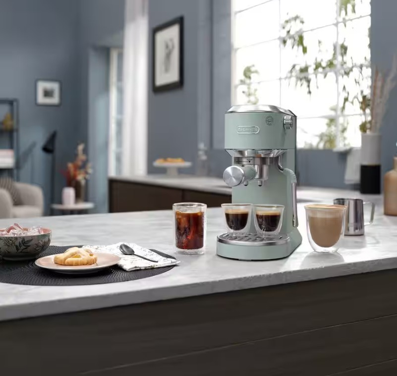 V kuhinjo prinesite italijanski slog z eleganco Dedico Duo. Ta tanki espresso aparat, s širino le 15cm, vključuje visoko zmogljivost v kompaktnem ohišju. Prefinjeno kovinsko izvedbo dopolnjujejo dragocene podrobnosti za pridih elegance.