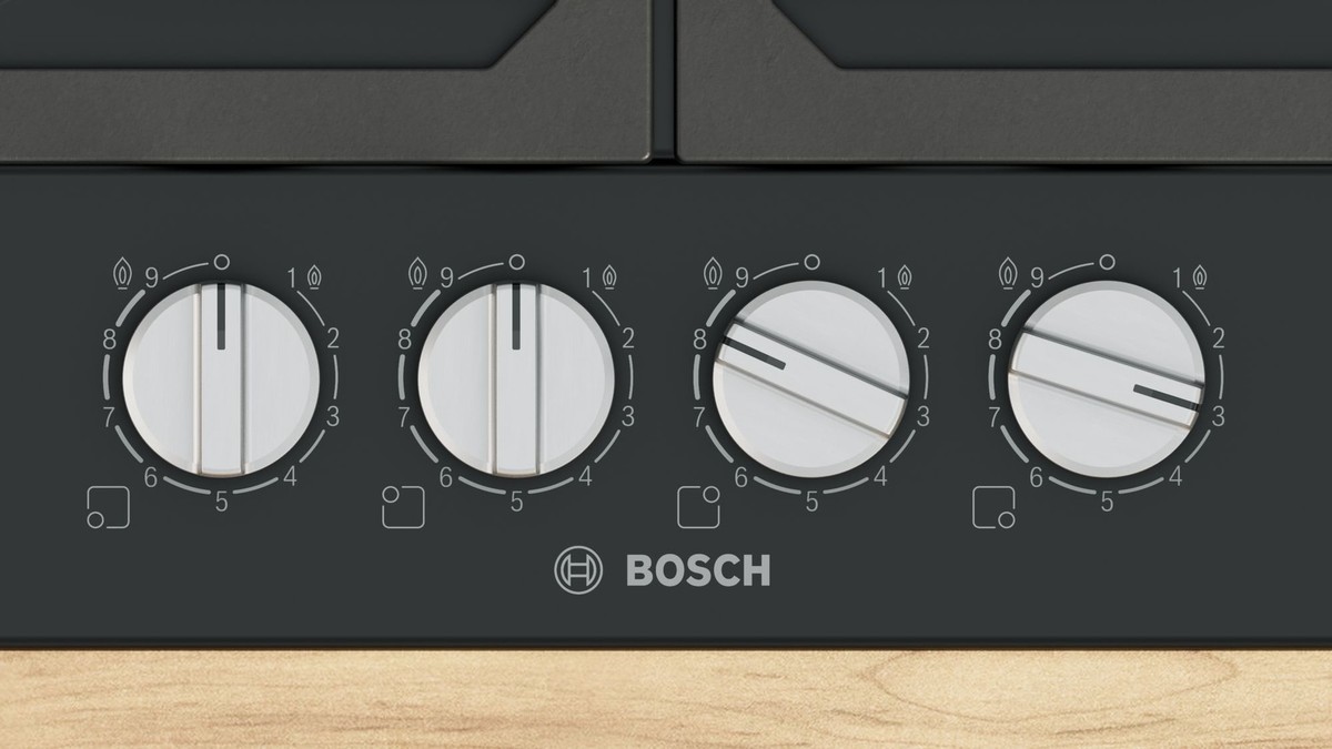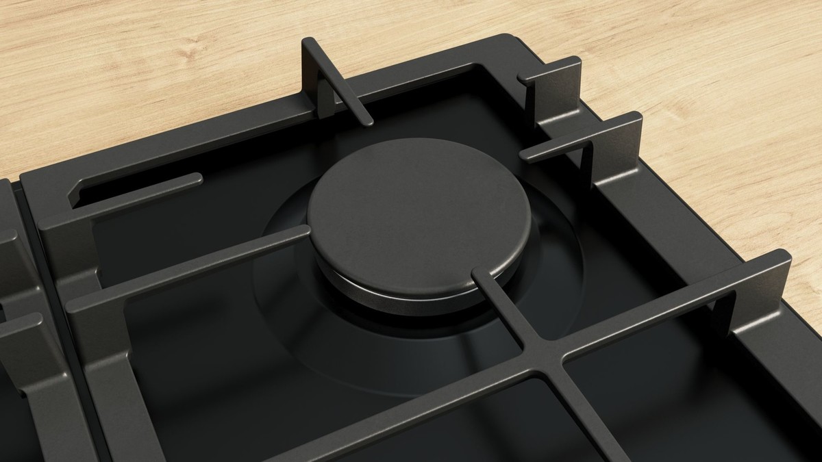 Plinska kuhalna plošča z natančnim nadzorom plamena in enostavnim čiščenjem zahvaljujoč snemljivim kovinskim gumbom in litoželeznim nosilcem za posodo, primernih za pomivanje v pomivalnem stroju.