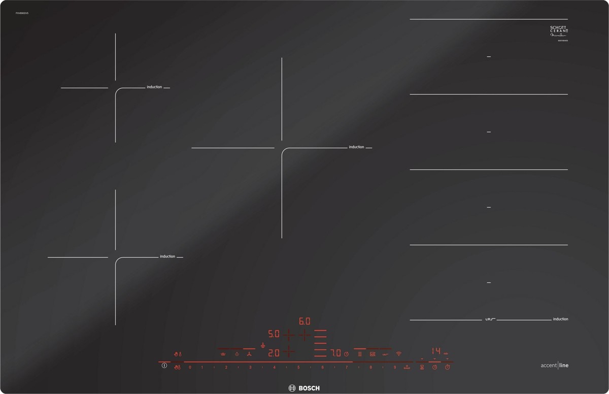 Indukcijska kuhalna plošča FlexInduction: več loncev ali veliko posodo lahko poljubno postavite na fleksibilno kuhalno cono.