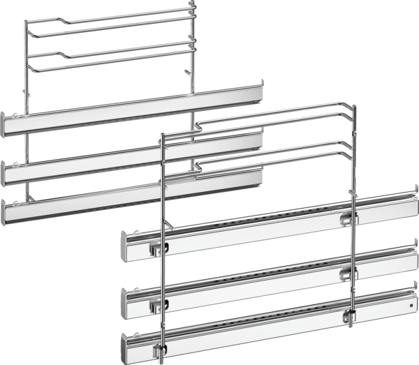 S teleskopskimi vodili na 1., 2. in 3. višini lahko pekače in dodatke popolnoma izvlečete iz pečice, ne da bi se prevrnili.