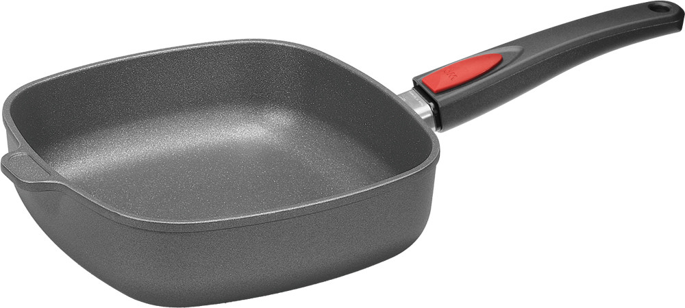 Kvadratna ponev za cvrtje Titanium Nowo 24×24 cm je primerna za vse vrste štedilnikov. Lahko jo uporabljate tudi v pečici; odporna je proti vročini do 250°C. Če je ročaj snemljiv, ga je potrebno pred uporabo v pečici odstraniti. Lahko se pomiva v pomivalnem stroju.