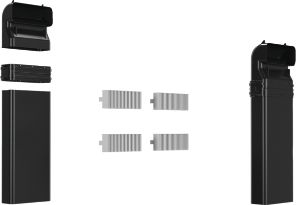Priključni začetni komplet za konfiguracije kanalskega odvajanja zraka pri vaši kuhalni plošči z integriranim ventilacijskim modulom v kuhinjah z delovnimi ploščami globine 60 cm ali več.