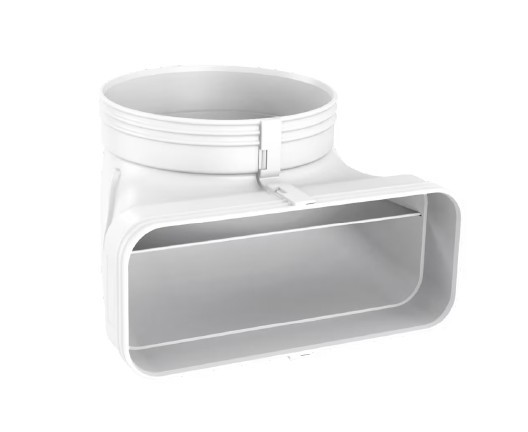 • Kompakten kotni-okrogli adapter 90°, glob. 130 mm, višina 136 mm