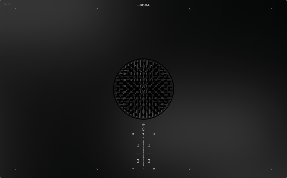 BORA X Pure lahko upravljate s tribarvnim upravljanjem na dotik sControl+. Različne nastavitve delovanja so tako med seboj jasno vizualno ločene. Inteligentna blokada čiščenja samodejno zazna, kako dolgo je treba kuhalno ploščo čistiti, in se šele nato izklopi. Funkcija bridge in funkcija samodejnega zaznavanja lonca na optimiziran način.