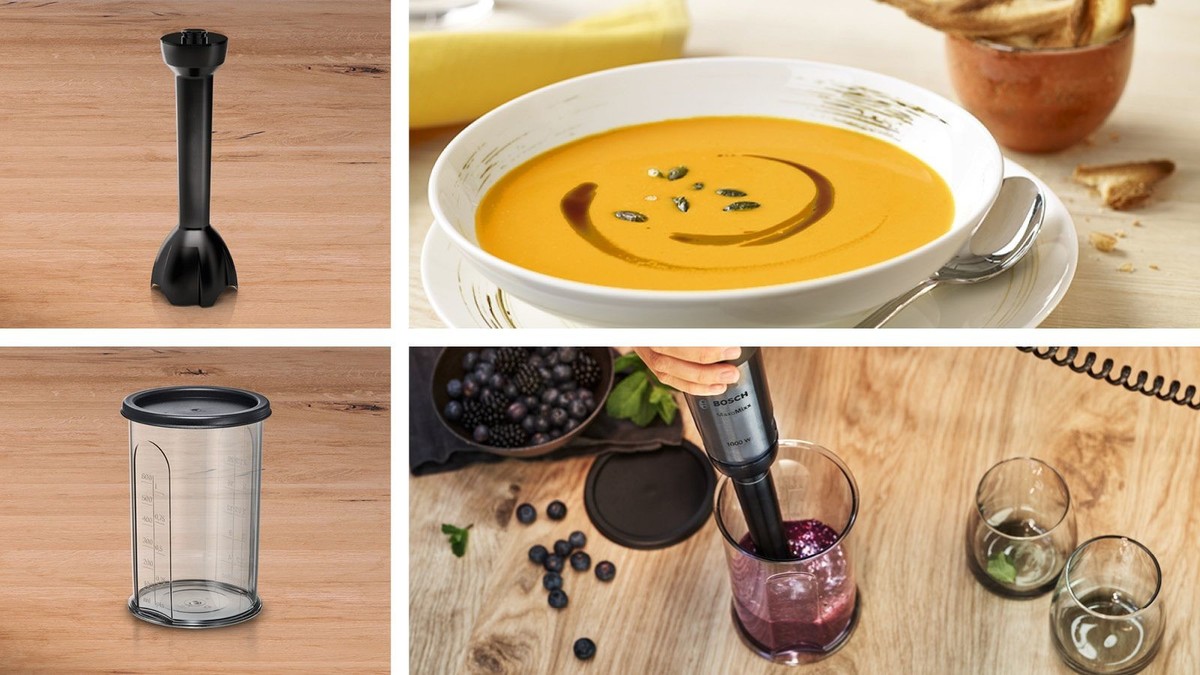 • Maksimalna moč Bosch po zaslugi 1000 W motorja: obdelava trših sestavin in možnost uporabe številnih nastavkov.