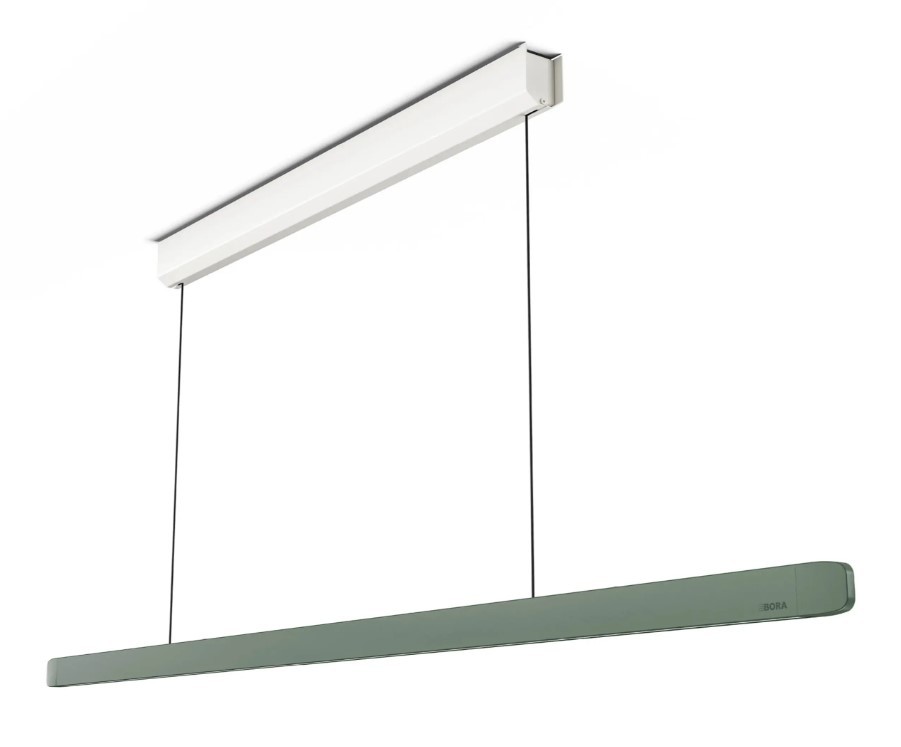 Linearna viseča svetilka BORA Horizon nudi funkcionalno in čustveno osvetlitev v skladu z individualnimi željami. Pri fiksni možnosti je treba višino nastaviti z omejevalniki na stropnem ohišju. Za to niso potrebna nobena orodja. Višino luči lahko prilagodimo razmeram v kuhalnem in jedilnem prostoru. Tri možnosti v črni, rožnato zlati in zeleni mahovi ponujajo primerno barvno vsestranskost za vsak dizajn bivalnega prostora.