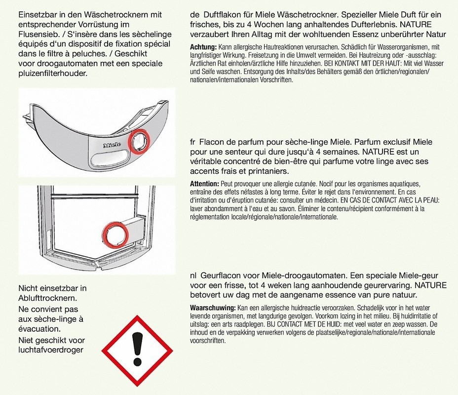 • Za vse sušilne stroje Miele T1 s funkcijo FragranceDos