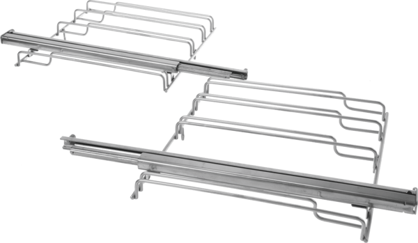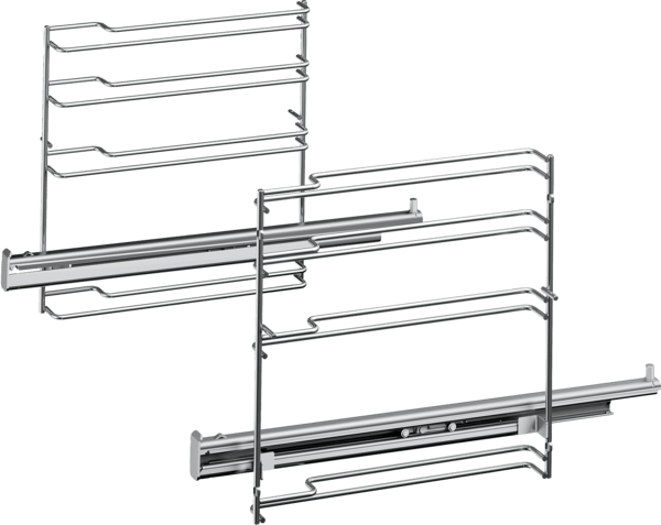 S teleskopskimi vodili na 1. nivoju lahko pekače in drugo opremo popolnoma izvlečete iz pečice, brez nagibanja.