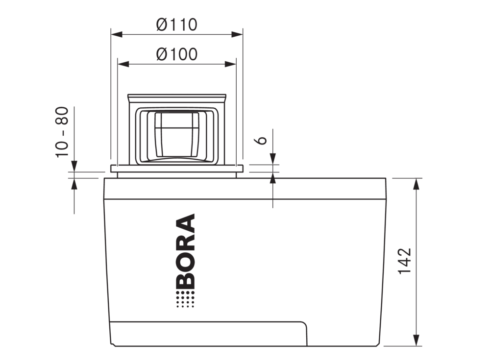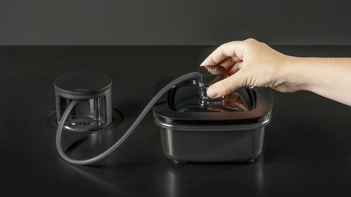 Zaradi inovativnega in edinstvenega koncepta namestitve BORA QVac ne zavzema nujno potrebnega prostora na delovnih površinah v kuhinji - naprava je nameščena pod delovnim pultom, prav tam kot sistemi odvoda pare. Vgrajena vakuumirka omogoča nasadno montažo ter montažo, pri kateri je vakuumirka v isti ravnini s pultom.